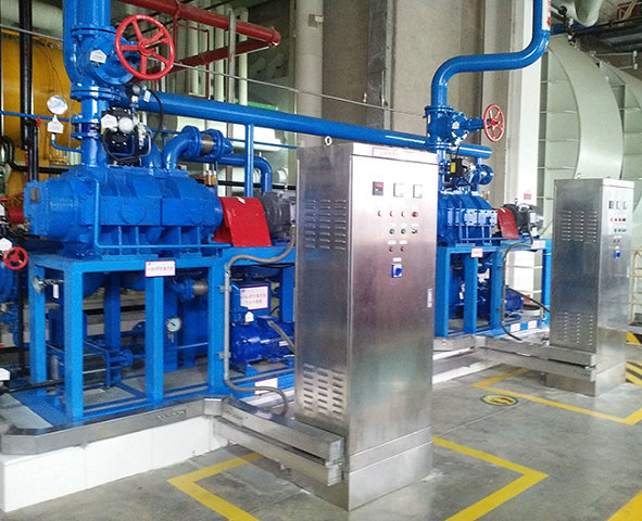 氣冷羅茨泵機(jī)組真空產(chǎn)品。特別適用于電廠凝汽器抽真空和變壓吸附(制氫、癢、氮)的行業(yè),具有節(jié)能、高效、環(huán)保等特點(diǎn)。氣冷羅茨真空泵主要由轉(zhuǎn)子、泵體、冷卻器等組成,由于其特殊的結(jié)構(gòu)設(shè)計(jì),使其可以在高壓差和高壓縮比下長期可靠運(yùn)行。冷卻氣體從泵體的兩側(cè)進(jìn)入泵的吸氣腔,使泵不會因壓縮氣體而出現(xiàn)過熱,但對泵的抽氣性能沒有任何影響。轉(zhuǎn)子在泵腔內(nèi)旋轉(zhuǎn)120度并完成一次吸、排氣的過程。冷卻器和電機(jī)是每臺泵必備的附件,冷卻器和電機(jī)的規(guī)格是根據(jù)不同的工況而定。泵可以單獨(dú)使用也可以多臺串聯(lián)使用,或與液環(huán)真空泵和普通羅茨真空泵串聯(lián)成機(jī)組,達(dá)到更高真空度來滿足各類工藝要求。多級串聯(lián)或和其它前級泵泵串聯(lián)后可以達(dá)到中真空范圍。與其它機(jī)械真空泵比較,節(jié)能效果十分顯著。